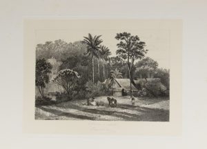 VETH (P.J). Insulinde. Twaalf tafereelen uit Nederlandsch Indie. Uitgave van Kesteren (1882). In folio, percaline rouge de l’éditeur, coffret bleu moderne.Ouvrage illustré de 12 belles eaux fortes, toutes ici en épreuves d’artiste. Exemplaire...
