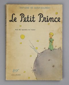 LE PETIT PRINCE. Avec dessins de l’auteur. Paris, Gallimard, 1953. Petit in-4° (22.1 x 16.5 cm). Broché, couverture rempliée illustrée.Tirage du 25 Mai 1953. Couverture un peu tachée.