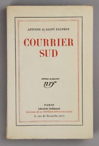 SAINT-EXUPERY (A. de). Courrier Sud. Paris, Gallimard, 1929. In-12, broché.Edition originale. Tirage à 806 Exemplaires, celui-ci l'un des 650 sur vélin pur fil destinés au Amis de l'édition originale. Petites piqures sinon bel exemplaire.