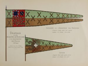 CARNOT (Sadi). Les volontaires de la Côte d’Or. Dijon, Venot, 1906-42. 2 volumes in-4° brochés, couvertures illustrées.Tome 1. Origines historiques et formation de 1789 à 1791. Tome 2. En campagne, 1792-1796. Nombreuses planches hors texte....