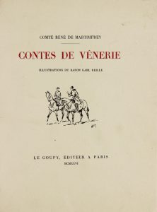 MARTIMPREY (Comte Henri de). Contes de vénerie. Illustrations du Baron Karl Reille. Paris, Le Goupy, 1926. In-8 carré de 97 pages, broché, couverture illustrée.Ouvrage couronné par l’Académie Française, et épuisé dès sa sortie en...