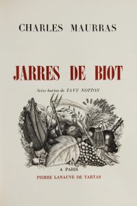 MAURRAS (Charles). Jarres de Biot. Paris, Lanauve de Tartas, 1951. Petit in-4°, en feuilles sous chemise et étui de l’éditeur. Illustré de 16 burins de Tavy Notton. Tirage limité à 250 exemplaires numérotés sur vélin de Rives comportant...