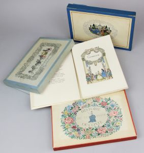 PERRAULT. La Belle au bois dormant - La Barbe Bleue - Cendrillon. Dessins de Henry Lemarié gravés sur bois. Paris, Jean Porson, (1942-1950). 3 volumes in-8 en feuilles, couvertures rempliées, sous emboitages illustrés.Célèbres contes très...