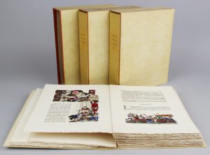 RABELAIS. Gargantua - Pantagruel. Illustré par Henry Lemarié. Paris, éditions du Rameau d'or (1950). 3 volumes in-4° en feuilles sous chemise et étui.Bon exemplaire orné de nombreuses illustrations dans le texte du miniaturiste Henry Lemarié...