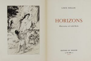 ROLLIN (Louis). Horizons. Illustrations de Lobel-Riche. Paris, Éd. du Moustié, 1945. In-8, en feuilles, sous chemise et étui.Belle eau-forte originale placée en frontispice et nombreuses compositions in et hors texte tirées en 2 tons. Tirage...