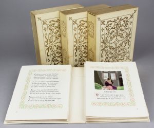 RONSARD : Les amours de Marie – Les amours de Cassandre – Sonnets pour Hélène. Aquarelles de A. E. Marty. Paris, Les Heures claires, 1957. 3 volumes in-4° en feuilles, sous chemises et étuis ornés de l’éditeur.Bon exemplaire illustré de...
