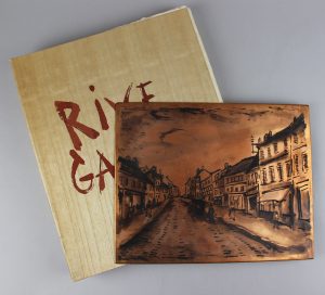 Publication d’artiste. Edition originale ornée de 15 gravures sur cuivre de Vlaminck dont 10 coloriées au pochoir (couverture, bandeau et 8 à pleine page), 1 autoportrait de Vlaminck signé au crayon et 4 gravures hors texte en noir, 2 autoportraits de Dona Elvira et Vlaminck par Modigliani tirés en fac-similé. Tirage à 300 exemplaires, celui-ci l’un des 10 sur Japon nacré comportant un cuivre original de l’une des illustrations du livre, une eau forte originale signée (paysage d’été), une suite en couleurs sur Arches et une suite en noir sur Chine. Cernes sur le coffret.