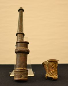 ASHANTI (Ghana).- Ensemble de 2 pipes en bronze ouvragé (dont 1 sans le tuyau).