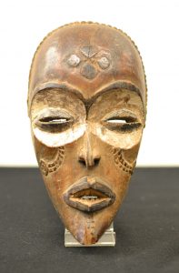 CHOKWE (R.D.C.).- Masque décoratif en bois (petit manque au menton). Hauteur : 23 cm.
