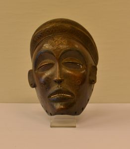 CHOKWE (R.D.C.).- Beau masque en bois orné de motifs géométriques. Hauteur : 20 cm.