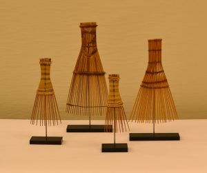 CONGO (R.D.C.).- Ensemble de 4 peignes montés sur support métallique et socle en plexi noir. Hauteur : 26, 15, 22 et 18 cm.