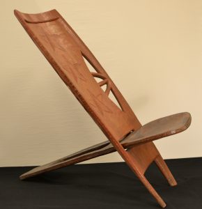 CONGO (R.D.C.).- Siège colonial en bois composé d'un dossier et d'une cuillère, décoré de motifs géométriques.