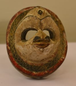 EKET (Nigeria).- 1 masque ovale en bois peint représentant une tête d'oiseau (15 x 12 cm) (peinture sur les bords partiellement frottée, petit manque en bordure).