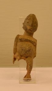LOBI (Burkina Faso).- Fragment d'une sculpture en bois au ventre pointu. Hauteur : 20 cm.