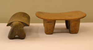 SENOUFO (Côte d'Ivoire).- Ensemble de 2 tabourets en bois, l'un avec 4 pieds, l'autre avec 3 pieds. Hauteur : 14 x largeur 39 cm ; hauteur 11 x largeur 39 cm (l'envers du siège est décoré de motifs géométriques).