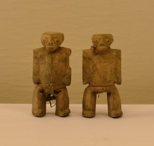 TOGO.- Ensemble de 2 petites statues en bois. Hauteur : 13 cm.