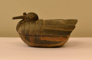YORUBA (Nigeria).- Boîte à noix de kola en forme de canard (à 2 compartiments). Hauteur : 18 cm ; longueur 36 cm.