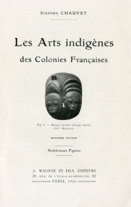 CHAUVET (Stephen). Les Arts indigènes des colonies françaises. 2e édit. P., A. Maloine et fils, 1924, 8°, 48 p. + 4 p. de publicités de la librairie Chamonal, ill. in-texte, br., couv. restaurée (manque marginal à 1 f., 1 correction manuscrite...