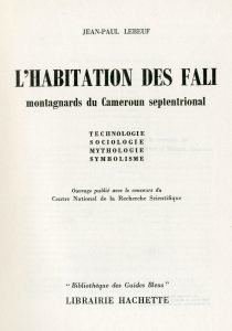 LEBEUF (Jean-Paul). L'Habitation des Fali, montagnards du Cameroun septentrional. Technologie, sociologie, mythologie, symbolisme. P., Hachette, 1961, petit 4°, 608 p, 12 planches hors texte d'illustrations photographiques en noir, 4 planches hors...