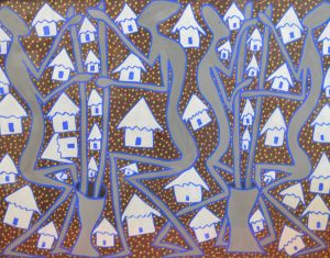 d'Elisabethville en 1954 et y côtoie les artistes de l'Atelier du Hangar (Mwenze Kibwanga, PilipiliMulongoy et Bela). Mode Muntu puise son inspiration dans les contes oraux, les légendes et les proverbes des Lubas, ainsi que dans sa propre vie. Les silhouettes épurées et longilignes qu'il dessine d'un trait de couleur semblent s'animer sur le fond composé de motifs répétés aux couleurs vives. Ses oeuvres ont été présentées en 1955 à Ostende, puis au pavillon congolais de l'Expo 58 à Bruxelles et à la Fondation Cartier en 1996 et 2015 (Beauté Congo 1926-2015 Congo Kitoko, Fondation Cartier pour l'art contemporain, p. 366).