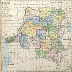Puzzle congolais. Carte du Congo dressée par J. Flamme, en forme de puzzle, 25,5 x 25,5 cm, dans cadre en bois. Grammont, Cercle colonial, sans date (1929).