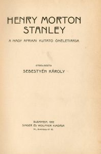 KAROLY (Sebestyen). Henry Morton Stanley. A nagy Afrikai kutato önéletirasa. Budapest, Singer és Wolfner Kiadasa, « Karriérek », 1912, 8°, 221 p., cart. édit. décoré (lég. traces d'usure au cart.). Un des premiers ouvrage sur Stanley en...
