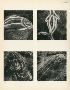 LAVACHERY (Henri). Les Pétroglyphes de l'île de Pâques. Anvers, De Sikkel, 1939, 2 vol. 4°, 1 vol. de texte de 140 p., 1 pl. h. t., br. et 1 album contenant 1 carte sur double page et 80 planches de figures et photos, en f. sous portefeuille...