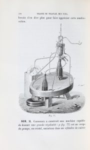 émoussés). Seconde édition. Cet ouvrage parut pour la première fois en 1858, sous le titre "Indications théoriques et pratiques sur le travail des vins". Il traite des propriétés des vins, de leur fabrication, de leurs maladies et de la fabrication des vins mousseux. Sur le plat supérieur, l'ex-libris, estampé à chaud, de la Chambre Syndicale du Commerce en gros des Vins et Spiritueux de Paris. Intérieur intacte aux feuillets non coupés.