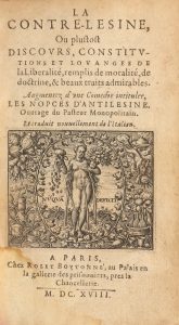 [VIALARDI, Francesco Maria].La Contre-lésine, ou plustost Discours, constitutions et louanges de la libéralité, remplis de moralité, de doctrine et beaux traits admirables, augmentez d'une comédie intitulée : les Nôces d'Antilésine, ouvrage...
