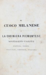 Réédition du plus important traité de cuisine piémontaise dont l’édition originale vit le jour à Turin en 1766, faisant dès sa première édition une adoption des innovations de la cuisine française, apportées par Menon dans La Cuisinière bourgeoise (Paris, 1746), tout en préservant le caractère propre de la tradition culinaire piémontaise. Avec beaucoup d’adresse l’auteur anonyme de cet ouvrage fait un habile mélange des usages et recettes internationales et régionales sans ne jamais dénaturer aucune tradition gastronomique. Dans un langage simple et concis il essaie de donner les indications pratiques, sans toutefois indiquer les quantités des ingrédients et le temps de cuisson des ingrédients. Les matières sont présentées selon un usage domestique, et d’après les principaux ingrédients et selon la place du plat à l’intérieur d’un menu. C’est cette particularité qui à assuré en partie le succès de ce manuel. Le modèle proposé par ce manuel est celui d’une cuisine traditionnelle, proche des prototypes quotidiens en opposition au courant nouveau du raffinement français en particulier, dont les coryphées sont Brillat-Savarin, Grimod de La Reynière et Carême, entre autres. Il Cuoco milanese marque une ligne de partage entre la haute gastronomie et celle
