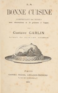 Garlin a voulu avec ce volume rendre accessible la haute cuisine française au plus grand nombre. Exemplaire dans le joli cartonnage illustré défraichi, frottements et trou à un mors. Qq. rouss. sur les premières pages.