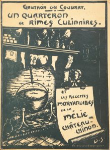 GAUTRON DU COUDRAY. Un quarteron de rimes culinaires, suivies de recettes morvandelles de la Mélie de Château -Chinon.Nevers, Chassaing,1938; petit in-8 carré broché, couv. ill. 239 pp. Bos originaux de Didier Sayet.Edition originale de ce...