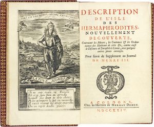 [ARTUS (Thomas)]. Description de l'isle des hermaphrodites nouvellement découverte. Pour servir de supplément au Journal de Henri III. Cologne, Héritiers de Herman Demen [Bruxelles, Foppens], 1724. In-8, maroquin rouge, triple filet doré, dos...