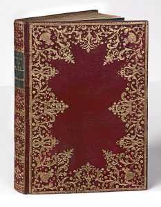 fers ornée de fers à l'enfant musicien aux angles et à l'angelot jardinier avec l'inscription Amour me fait vivre sur les côtés, dos lisse orné, double pièce de titre verte, double filet sur les coupes, roulette intérieure dorée, tranches dorées, chemise et étui (Reliure de l'époque).