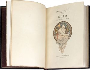 Édition originale et premier tirage, orné de 12 compositions en couleurs par Alfons Mucha. # Un des 50 exemplaires sur chine contenant deux suites à part des illustrations en couleurs et en noir. # Superbe exemplaire en reliure doublée de Marius Michel. # De la bibliothèque Louis Barthou (1935, II, n°710), avec ex-libris. # Carteret Illustrés IV, p. 167 – Mahé II, 100.