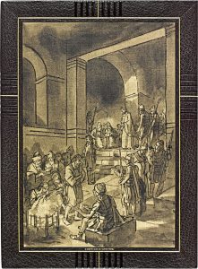 [LE MAISTRE DE SACY (Louis-Isaac)]. Évangile selon Saint Luc. Paris, Pro Amicis, 1932. In-folio, maroquin havane, multiple filets à froid et un doré formant une croix, au centre, disques de pointillés dorés d'où iradient des faisceaux de filets...