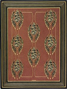 ornée d'un décor floral à répétition mosaïqué en maroquin serti or, gardes de soie beige rose, doubles gardes, couverture et dos (René Kieffer).