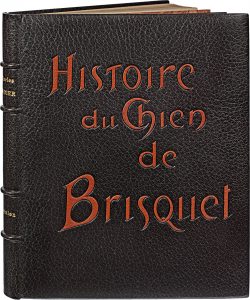 NODIER (Charles). Histoire du Chien de Brisquet. Précédée d'une lettre à Jeanne par M. Anatole France. Paris, Édouard Pelletan, 1900. In-4, maroquin brun orné au premier plat du titre de maroquin orangé mosaïqué, tranches dorées sur...