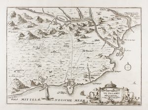 1702. MERIAN, MATHIAS: DIE LAGER LEGEND VON PALAMOS UND GIRONE IN DER PROVINF CATALONIEN. Mapa de Palamós y Gerona, grabado al cobre. Frankfurt: 1702. 37 x 33 cm. Extraído del ´Theatrum Europeum´, publicación que difundía información...