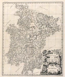 central y sur de China. Los mapas de Du Halde fueron reunidos por D´Anville y compilados a partir de un trabajo de investigación jesuita llevado a cabo en 1717. Los misioneros locales usaron fuentes y observaciones personales para preparar estos increíbles mapas de fino detalle.