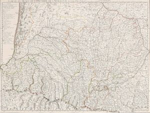 1742. (FRANCIA). ISLE, GUILLAUME DE L´ISLE; [MORTIER]: BEARN LA BIGORRE ARMAGNAC. Paris - Amsterdam: Chez Jean Covens et Corneille Mortier, 1742. Importante mapa grabado con los bordes coloreados. 64 x 52 cm. Comprende la Bigorre de l´Armagnac y...