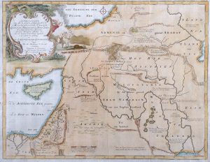 1748. (ISRAEL-ARABIA). GOETZEE: ABBEELDING VAN ALLE DE LANDEN GELGEN TUSSCHEN DE MIDDELANDSCHEN, IWARTE, CASPISCHE, PERSISCHE en RODE .. Kuilenburg: W.A. Bachiene, 1748. Mapa grabado coloreado. 42 x 54 cm.