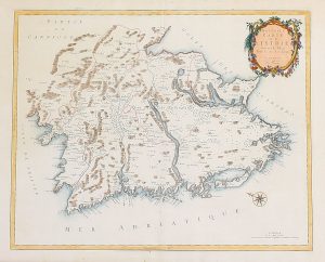 1780. (ISTRIA). NOUVELLE CARTE DE L´ISTRIE SUIVANT LE PLAN DRESSE SUR LES LIEUX. A Venise: Par P. Saini, 1780. [chez Remondini]. Grabado coloreado. 46 x 59 cm. plancha; 56 x 76 cm. papel.