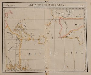 1850 ca. PARTIE DE L´ILE SUMATRA. Grabado con los bordes coloreados. 52 x 67 cm. Pequeños taladros.
