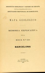 1928. MAPA GEOLOGICO - MEMORIA EXPLICATIVA DE LA HOJA Nº 421 - BARCELONA. Madrid: Tip. y Lit. Coullaut, 1928. 4º menor. 84 p. Ilustr. con 5 mapas plegados, 6 láminas con fotografías de paisajes y su análisis geológico y 7 láminas con restos...