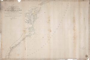 1826. (ESTADOS UNIDOS). CARTA ESFERICA DE LAS COSTAS ORIENTALES DE LOS ESTADOS UNIDOS EN LA AMERICA SETENTRIONAL, DESDE EL RIO DE SAN JUAN HASTA NUEVA YORK. Madrid: dirección Hidrográfica, 1826. Mapa grabado al cobre, 67x102 cm. Alguna mancha y...