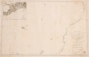 1857. (CARTA NAUTICA). CARTA ESFERICA DE UNA PARTE DE LA COSTA OCCIDENTAL DE AFRICA COMPRENDIDA DESDE CABO ESPARTEL HASTA PUERTO CANSADO. Madrid: 1857. Grabado. 67 x 101 cm. Leves arrugas y manchas de óxido.