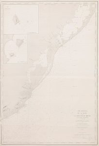 1863. (CARTA NAUTICA - BRASIL). CARTE D´ATTERRAGE DE LA PLATA ET DE LA COTE SUD DE BRESIL DE L´ILLE LOBOD A TRAMANDAHY. Paris: Dépôt des Cartes et des Plans de la Marine, 1963. 95 x 65 cm.