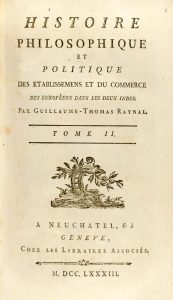 1783. (COLONIZACION INDIAS-GEOGRAFIA). HISTOIRE PHILOSOPHIQUE ET POLITIQUE DES ETABLISSEMENS ET DU COMMERCE DES EUROPEENS DANS LES DEUX INDES. A Newchatel & Genève: chez les Libraires Associés, 1783. 9 vols. en 8º. 400 p. aprox. cada vol. Bellos...