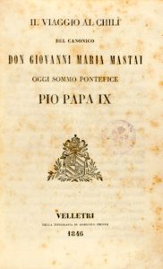 1846. (GEOGRAFIA-VIAJES-CHILE). IL VIAGGIO AL CHILI DEL CANONICO DON GIOVANNI MARIA MASTAI. Vellentri: nella Tipografia di Domewnico Ercole, 1846. 8º. 53 p. Frontis con retrato litográfico de Pio IX. Sello estampillado y esporádicas manchas de...